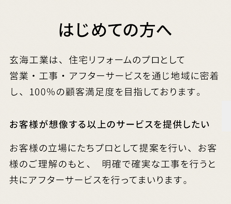 玄海工業は、営業・工事・アフターサービスを通じて地域に密着し、100%の顧客満足度を目指しております!